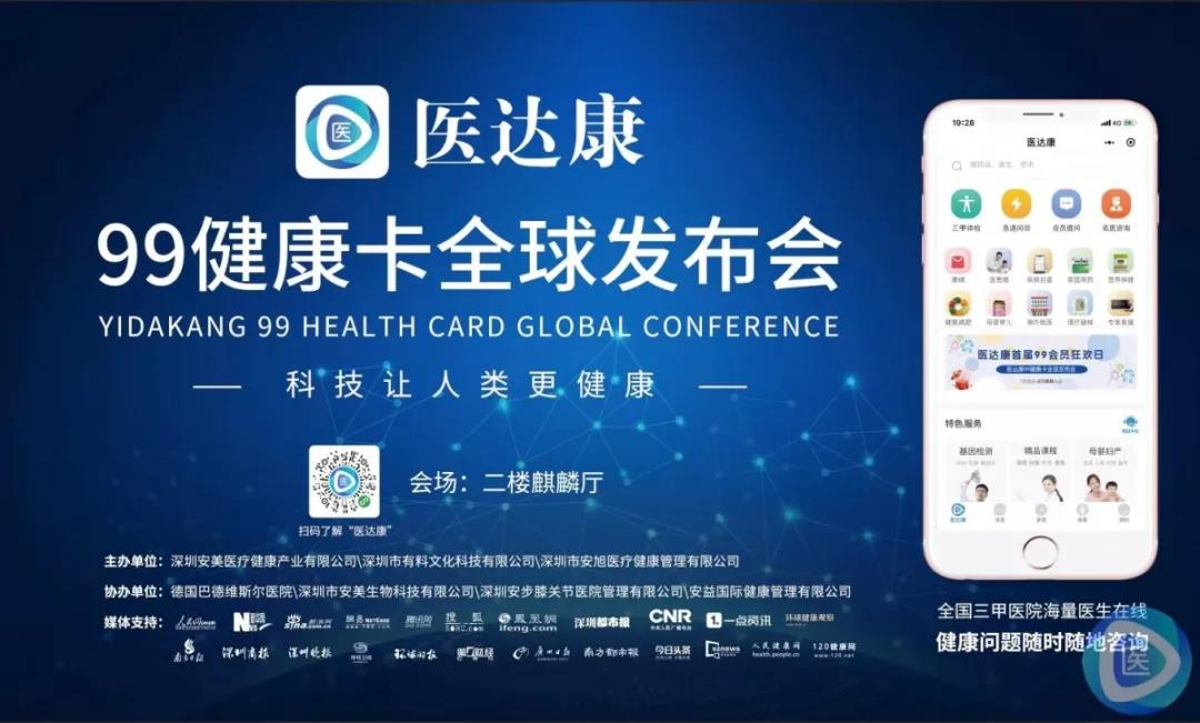 7月28日,“2019健康中国-健康产业发展高峰论坛暨医达康99健康卡全球发布会”在深圳麒麟山庄举行。医达康99健康卡以“平台+AI+生态”的战略理念推动中国医疗健康产业创新,融合医疗健康产业链上的企业家、科学家、共同缔造医疗健康生态圈。