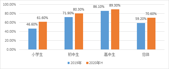 2019—2020年上半年中国学生视力不良率