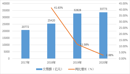 2017-2020年中国共享经济市场交易额